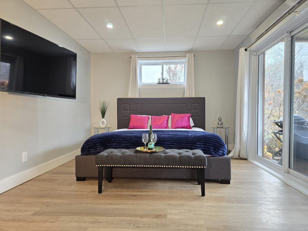 Comprend votre salle de spa intérieur (entièrement privé et non-partagé) avec sauna sec, bain vapeur et un grand spa, accessible en tout temps lors de votre séjours.
